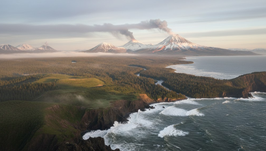 • 中央低地の taiga(タイガ): 山脈に守られた中央の低地(カムチャツカ川流域)は、沿岸部よりも夏に気温が上がりやすく、冬は逆に冷え込みが激しいのが特徴です。ここには豊かな針葉樹林が広がっています。
